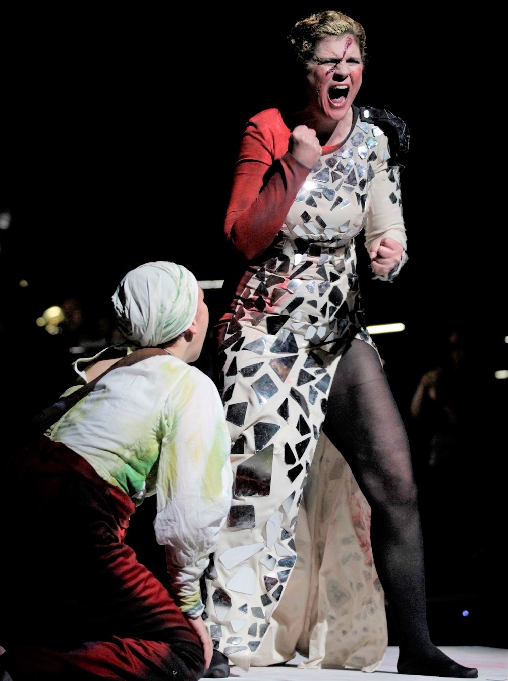 Blažević navodi kako nijedan od likova ne želi prikazati na način kako su ih dosad prikazivale literatura i druge produkcije. Elektra u ovoj inscenaciji nije ni mahnita poput divlje mačke (kako je opisuje Druga sluškinja na početku opere) niti dijete u tijelu odrasle osobe koje je doživjelo psihičku traumu u obitelji. Prikazana je pasivno-agresivnom i možda suviše racionalnom u svojem kontroliranju susreta s drugim protagonistima. Prve Elektrine riječi u operi sažimaju poziciju osobe koja je zaista sama na svijetu (Allein! Weh, ganz allein); zajedništvo ne uspijeva ostvariti ni s bratom Orestom kojemu se toliko nadala i kojeg je toliko čekala, a u završnom plesu, nakon umorstva Klitemnestre i Egista, poziva cijelu zajednicu da joj se pridruži, ali to se ne može dogoditi: ona osjeća težinu oceana koji je privlači prema zemlji (und ich kann nicht, der Ozean...). Blažević je činjenicu Elektrine neminovne usamljenosti i neprihvaćenosti, koju nije riješilo ni dvostruko umorstvo koje je toliko priželjkivala, vizualno pomutio simboličnim lijeganjem drugih likova na bijeli kvadrat na kraju opere.