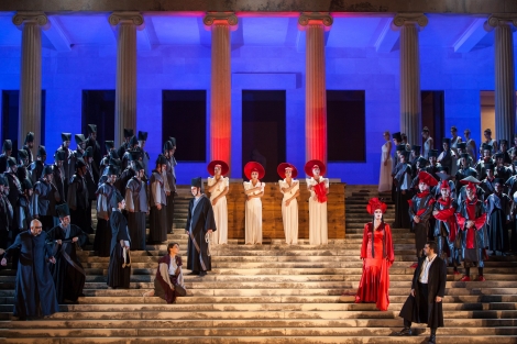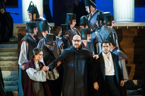 Naslovnu je ulogu ovom prilikom tumačila Daniela Schillaci, stalna gošća splitske opere. Sopranistica dotjerana tona i tehnike, koju smo prije nešto manje od mjesec dana gledali u ulozi Amelije Grimaldi u Verdijevoj operi Simon Boccanegra, uložila je maksimum izvođačkih vještina kako bi udovoljila zahtjevima ove, po svim kriterijima kompleksne uloge koja u izvjesnoj mjeri izlazi iz okvira njezina repertoara te kako bi svladala akustički izazovan prostor. U drugom je dijelu predstave u tome bila uspješnija, a njezin je umjetnički doprinos bio uvjerljiviji, sigurniji i stabilniji.