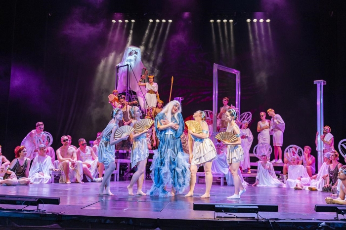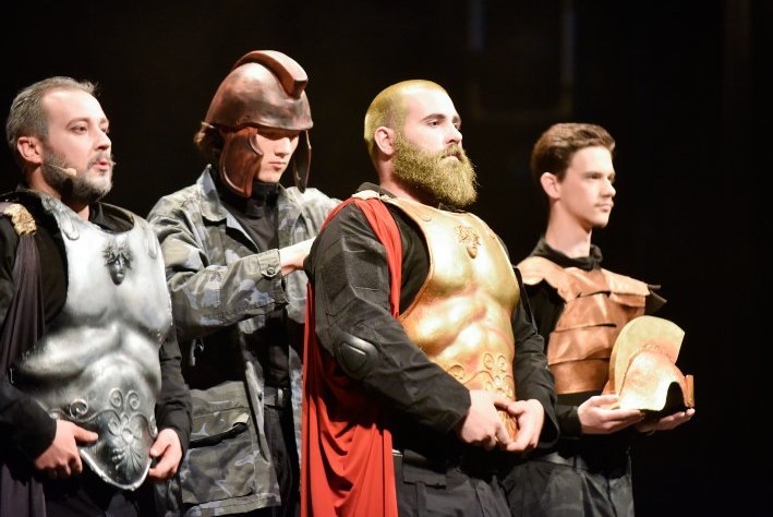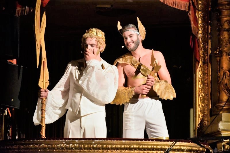 Papandopulo je u navedenom tekstu opširniji, ali već je iz uvoda sve jasno. Mijo Štimac, neutvrđeni pisac i Enrico Golisciani, napuljski operni libretist s prijelaza 19. u 20. stoljeće, navode se kao autori libreta, iako prema onome što smo na svibanjskim izvedbama imali prilike čuti, moguće je da je tekst prekrajan i prilagođavan. Jednako tako je rečeno da je cijela partitura kraćena u glazbenom dijelu. Pa ipak, i ovako predstava traje puna tri sata. No, bilo kako bilo, a to potvrđuju i sve u programskoj knjižici objavljene fotografije s proba, studentice i studenti MA kao interpreti, a zacijelo i svi ostali koji su osigurali izvedbu u pogledu scenskog pokreta, koreografije, scenskog govora, scenografije, kostimografije, oblikovanja svjetla, video-animacije, vizualnog identiteta, pa i scenografskih i kostimografskih rekvizita, oglavlja i kiparskih radova i još ponečega, imali su u razdoblju priprema sjajne prilike za iskazivanje vlastite inventivnosti. A dakako, i vrlo ugodnog generacijskog druženja! Jer, kao što je najavljivano, Amfitrion je „svojevrsna komedija zabluda koja dovodi do niza zabavnih, smiješnih i intrigantnih zapleta u radnji, dok briljantna orkestracija sadrži niz upečatljivih arija, majstorskih zborova i sjajnih ansambala“.